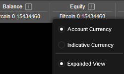Users can see their balance, equity, margin and P&L in the indicative currency of USD at any time via a single switch in TradeWatch options.